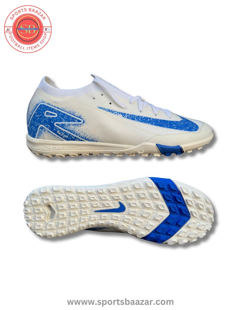 Take your game to the next level with the Nike Air Zoom Mercurial Vapor 16 TF Turf Football Boots – Beige/Blue. Designed for serious players who dominate on artificial turf, these elite shoes combine precision, speed, and style in every move.