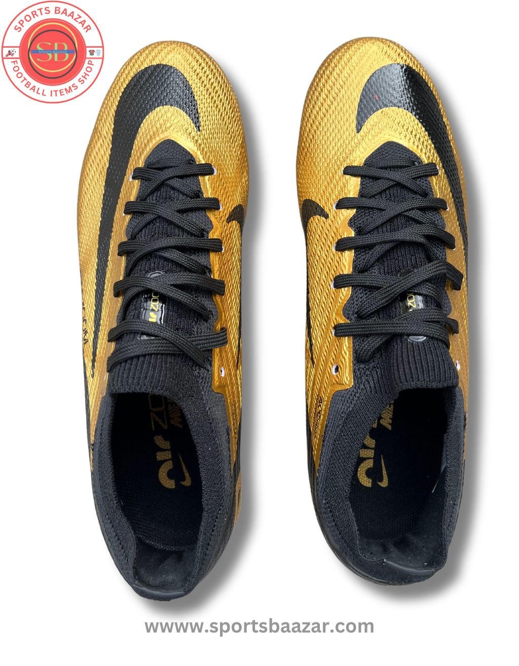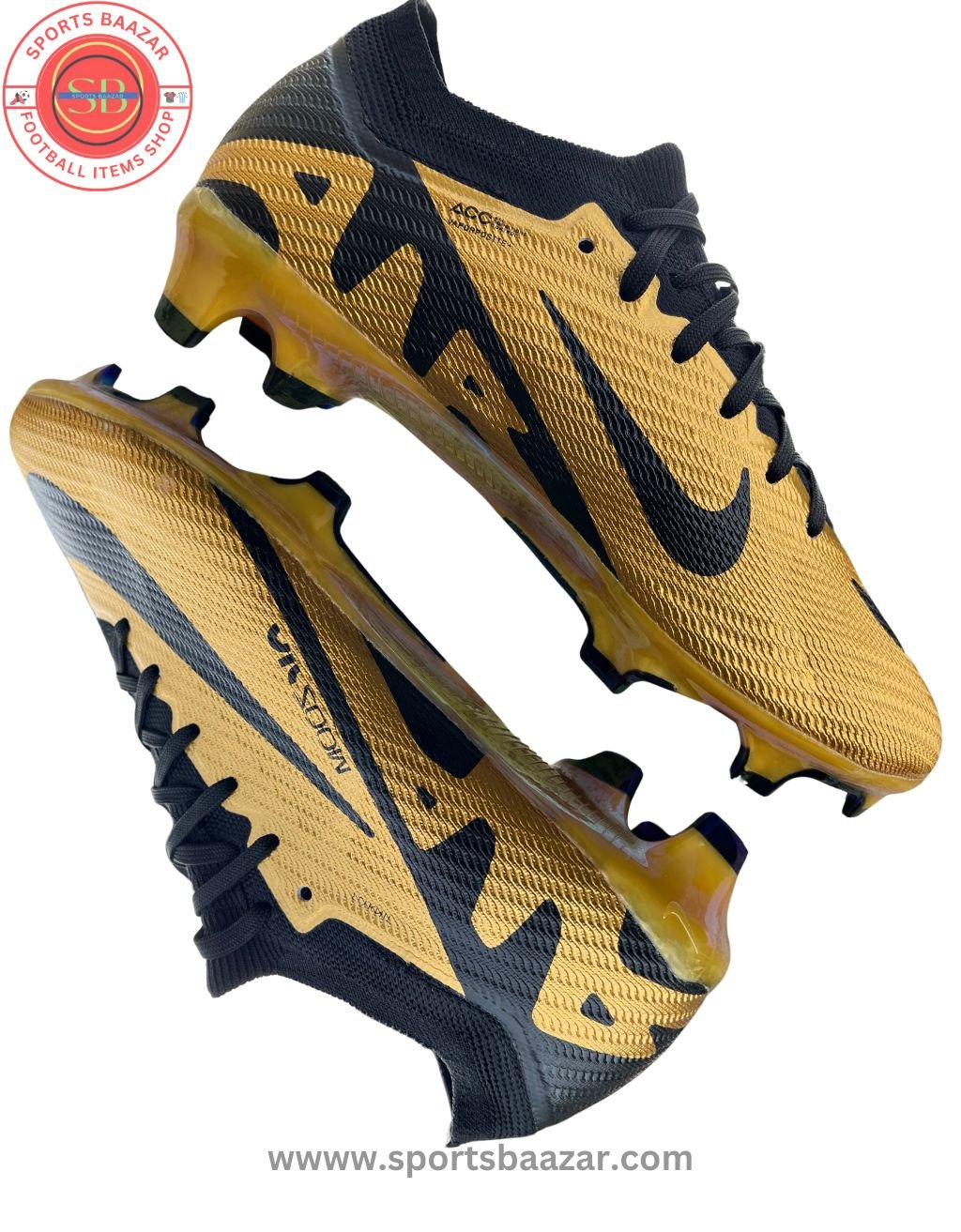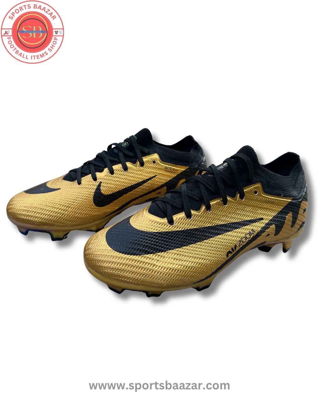 Dominate the pitch in style with the Nike Air Zoom Mercurial Vapor 15 Elite FG Soccer Cleats in an eye-catching Gold & Black two-tone design. Expertly crafted from durable PU material, these cleats are built to withstand intense play while delivering superior comfort and performance.